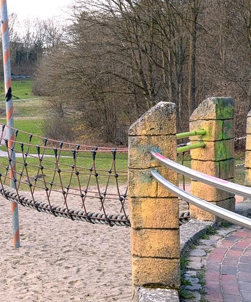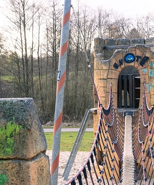 Gib deinem Kind die Möglichkeit, den Burgspielplatz im Grünen Zentrum zu entdecken und dabei spielerisch neue Abenteuer zu erleben. Die Kletterburg mit Seilbrücke und der lange Rutsche machen den Spielplatz besonders und sorgen zusammen mit den vielseitigen Spielmöglichkeiten für abwechslungsreichen Spaß im Freien.
