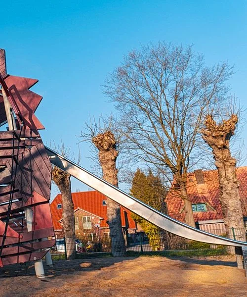 Der Drachenspielplatz am Katendeich ist ein besonderer Spielplatz in Nettelnburg. Highlight ist die große Drachenrutsche, die sofort ins Auge fällt und für viel Spaß sorgt. Ergänzt wird der Platz durch weitere Spielgeräte und genügend Raum zum freien Spielen im Grünen.