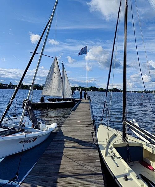 Segeln auf der Hamburger Alster ausprobieren. Ideal für die ganze Familie. Mit bis zu 4 Personen segelt ihr mit einem*r Trainier*in 1 Stunde mit einer kippstabilen Kieljolle über die Alster. Lass dich segeln oder nehme die Pinne selbst in die Hand. Erlebe eine geniale Mischung aus Sightseeing & Abenteuer. Mit uns siehst du Hamburg aus einer völlig neuen Perspektive.