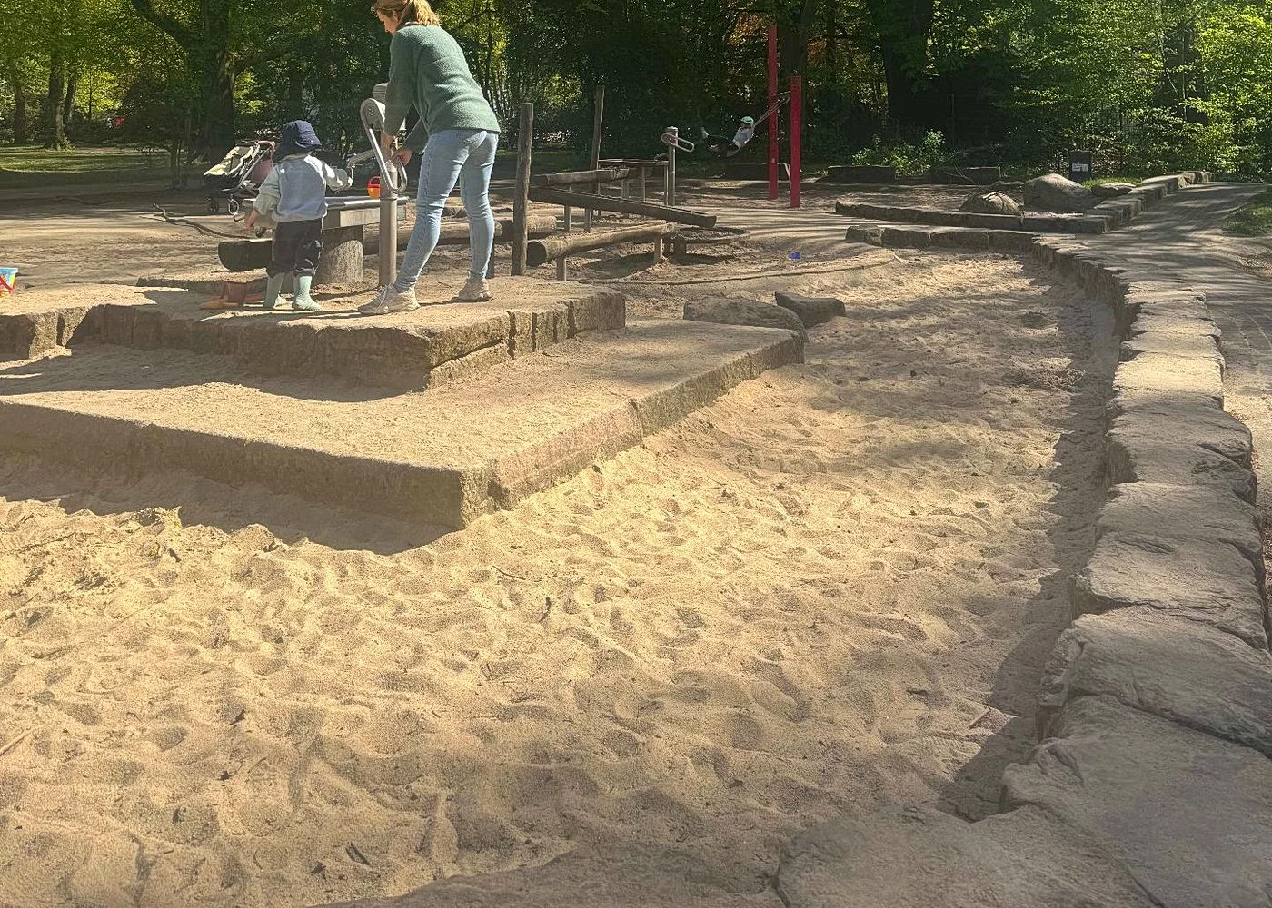 Fischers Park in Hamburg: viel Platz für Kinder jeden Alters. Mehrere Spielplätze mit Planschbecken und Wasserpumpen im Sommer toll. Offene Wiesen zum Rennen und viele schattige Picknickplätze. Dazu e...