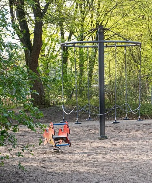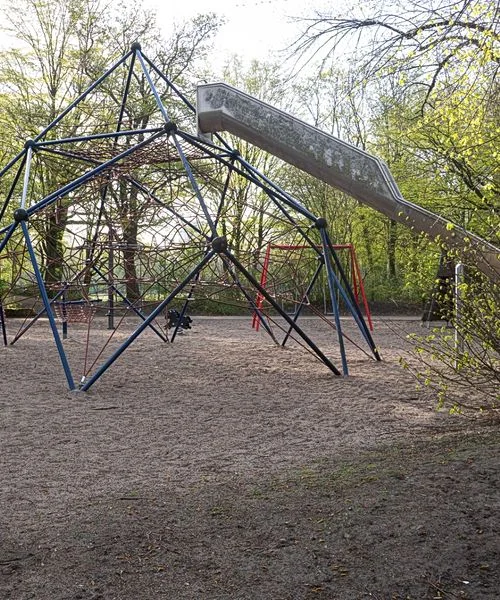 Der Spielplatz Rollerbahn wirkt wie ein vertrauter Nachbarschaftsort, an dem Kinder schnell ins Spiel finden. Die Rollerbahn zieht sofort Aufmerksamkeit auf sich, weil sie Bewegung, Geschwindigkeit und Spaß verbindet. Helm und ggf. auch Schoner sollten die Kinder unbedingt dabei haben, wenn sie die Rollerbahn ausprobieren möchten. Rundherum gibt es Sand, kleinere Kletterelemente und genug Platz, damit sich Kinder frei bewegen können. Die Atmosphäre ist offen und freundlich, denn der Platz liegt zwischen Wohnhäusern und wird viel von Familien aus der Umgebung genutzt. Eltern können sich gut am Rand aufhalten und haben trotzdem alles im Blick. Der Spielplatz eignet sich besonders für kurze, spontane Besuche, bei denen Kinder Energie loswerden und sich austoben können, ohne dass man weit fahren muss.